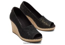 mujer sandalias diana con cuña tejida fruncida Toms LF64T8199 zapatos tejido fruncido negro