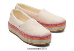 mujer alpargata plataforma valencia Toms LF64T8184 zapatos lino metálico melocotón polvoriento