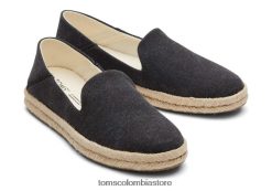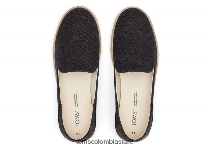 mujer lona de algodón reciclado santiago Toms LF64T8138 zapatos lona negra lavada